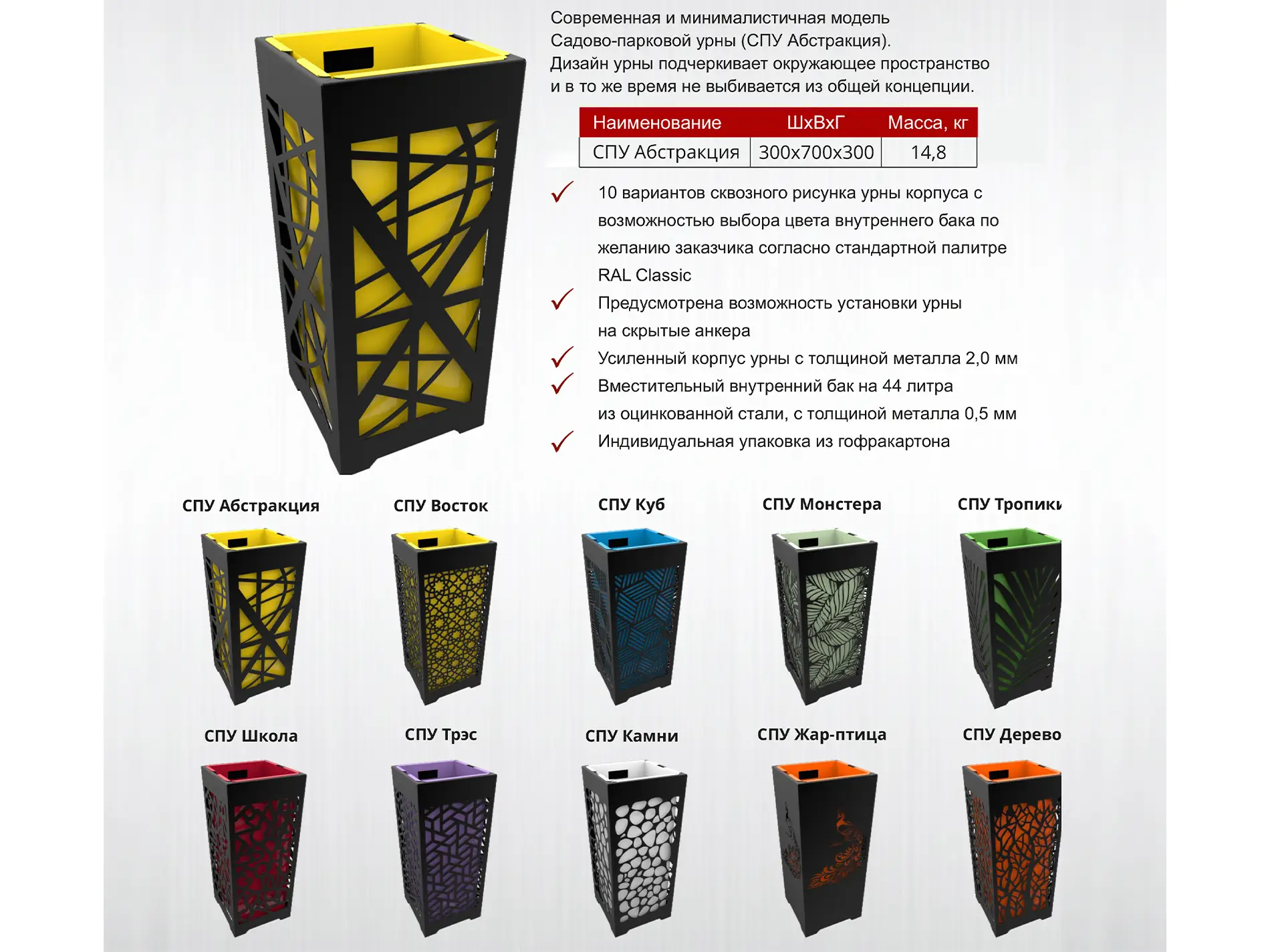 - Основание урны окрашивается в черный матовый RAL 9005.